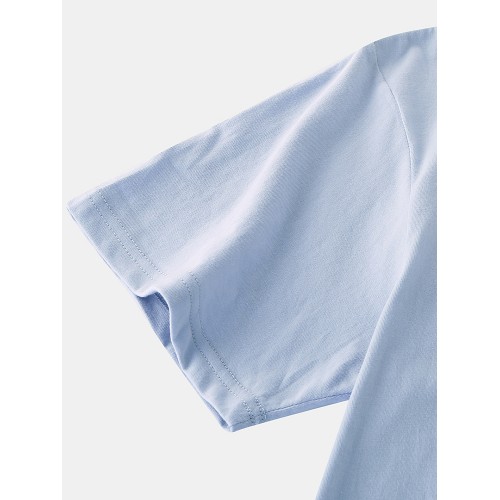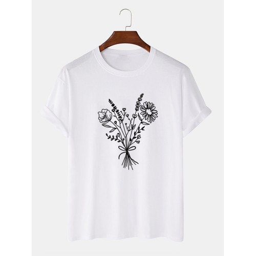 Mens Flower Line Print Round Neck Short Sleeve Shirt