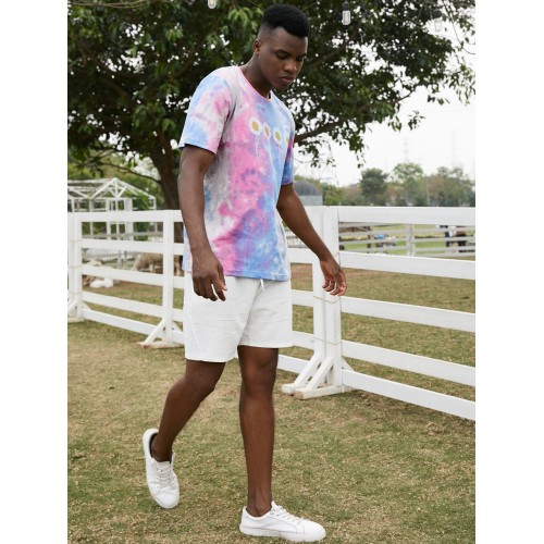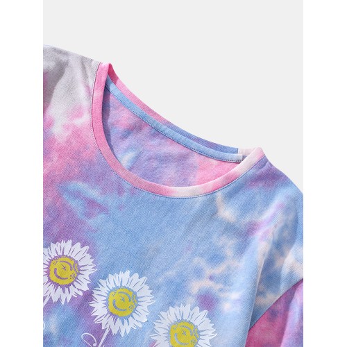 Mens Small Flower Print Tie Dye Round Neck Short Sleeve T Shirt