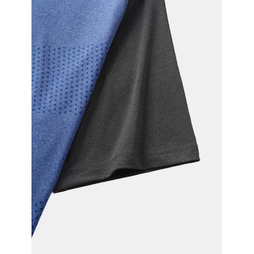 Men Ice Silk Patchwork Strench Breathable Pleats Thin Gym Activewear Top