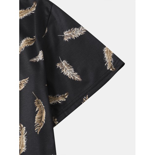 Mens All Over Leaf Printed Holiday Short Sleeve T Shirts
