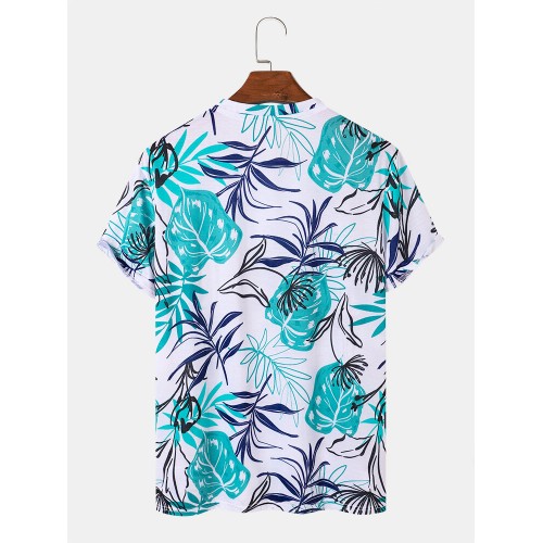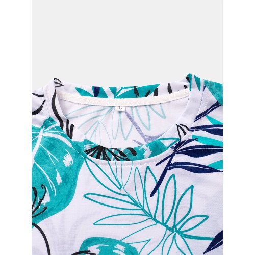 Mens All Over Plants Leaf Print Holiday Short Sleeve T Shirts