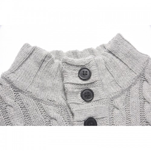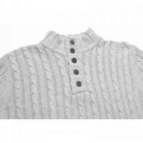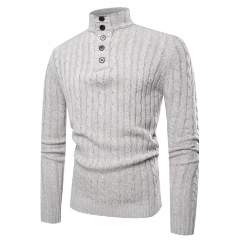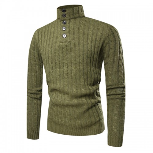 Mens Casual Breathable Buttons High Collar Solid Color Long Sleeve Sweaters