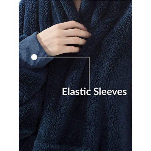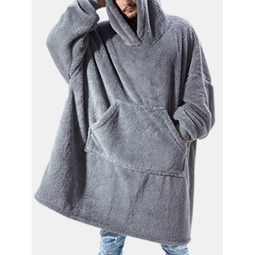 Mens Flannel Thicken Oversized Kangaroo Pocket Blanket Hoodies Warm Homewear