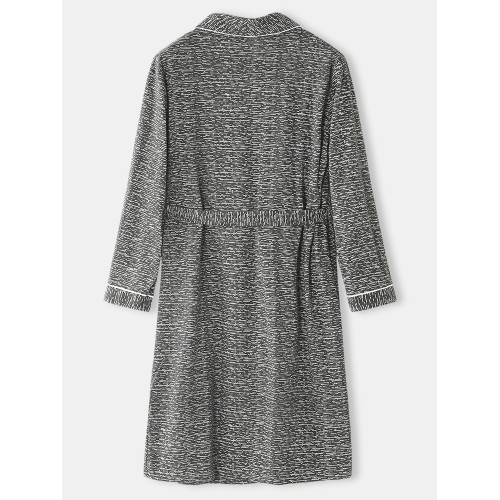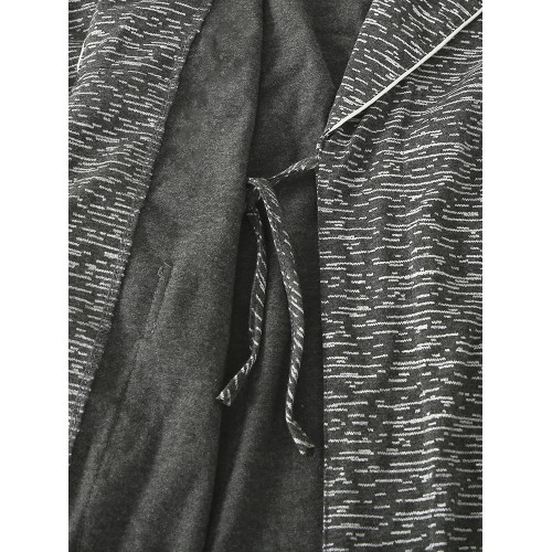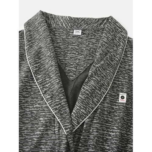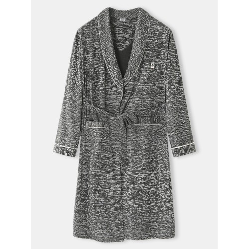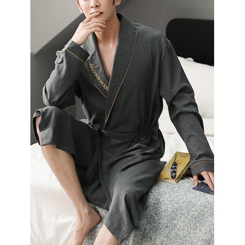 Mens Solid Color Letter Embroidery Double Pocket Lapel Sleepwear Robes With Sashes
