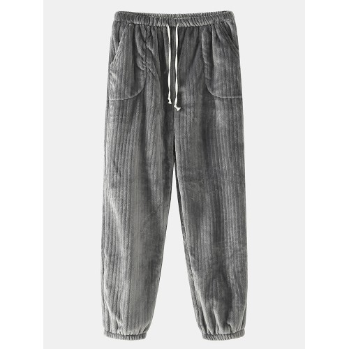 Mens Thick Solid Color Drawstring Plush Comfy Casual Sleepwear Jogger Pants