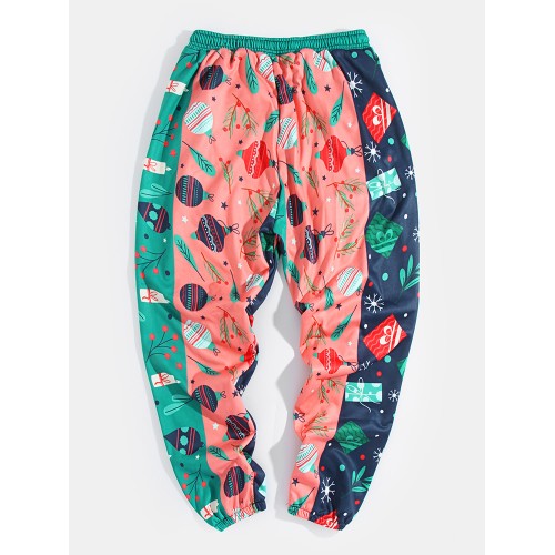 Mens Ugly Christmas Print Patchwork Casual Stylish Jogger Pants