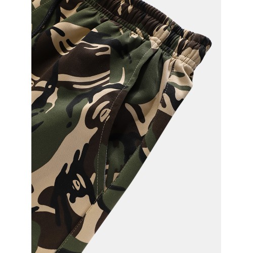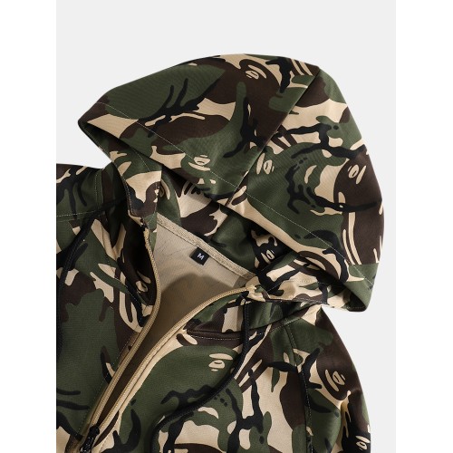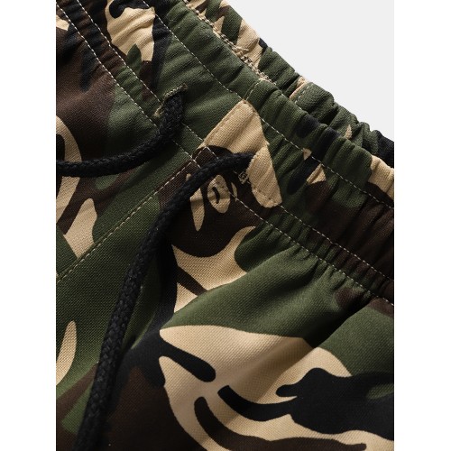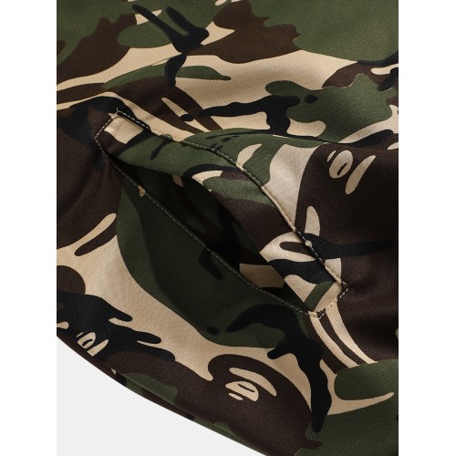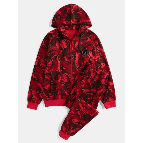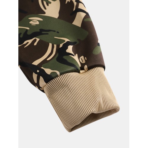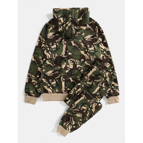 Mens Camouflage Print Hooded Jacket Jogger Pants Sports Casual Two Piece Outfits